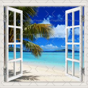 Windows,Seascape,Coconut Trees,Sandy Beach,Sea Level,Hills,Sky