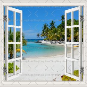 Windows,Seascape,Coconut Trees,Sandy Beach,Sea Level,Sky