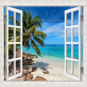 Windows,Seascape,Coconut Trees,Sandy Beach,Sea Level,Stones,Hills
