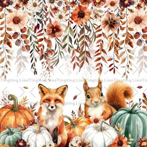 Thanksgiving,Autumn,Leaves,Flowers,Farmhouse,Pumpkin,Squirrel,Fox