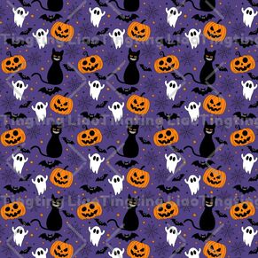 Halloween,Ghost,Pumpkin,Cat,Spider Web,Cartoon