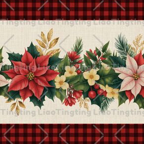 Christmas,Holly Leaf,Winter,Plaid,Pine,Retro