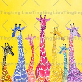 Giraffe,Animal,Neck,Blue,Red,Oil Painting,Art,Antlers,Ears,Eyes,Head,Body