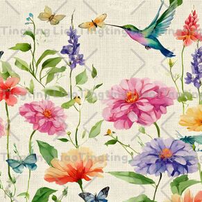 Flowers,Flowers,Watercolor,Retro,Casual,Hummingbird,Butterfly