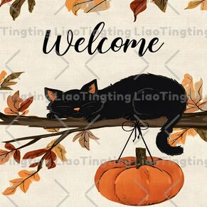 Pet,Cat,Branch,Watercolor,Retro,Pumpkin,Fall,Thanksgiving