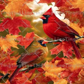 Male Female Tits,Cardinals,Leaves,Autumn,Thanksgiving,Red Bird,Nature