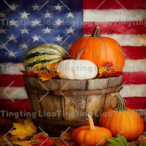 Autumn,Thanksgiving,Pumpkin,Retro,Watercolor,American Flag