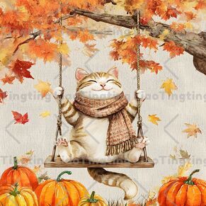 Autumn,Thanksgiving,Pumpkin,Retro,Watercolor,Pet,Cat