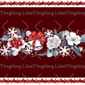 Christmas,Winter,Flowers,Snowflakes,Bell,Bow,Lace,Red Background