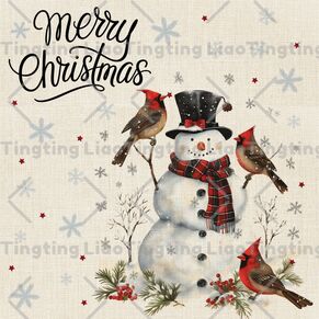 Christmas,Winter,Snowflake,Snowman,Cardinals,Stars,Writing,Pastoral,Linen