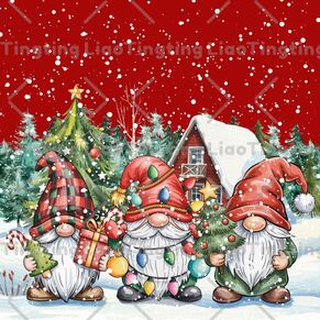 Winter,Christmas,Watercolor Style,Chalet,Snowflake,Gnome,Pine