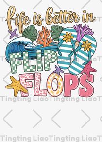 life Is Better In FLIP FLOPS, Flip-flops,Beach,Starfish,Waves,Tropical Plants