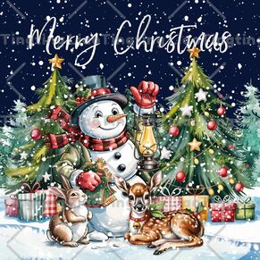 Christmas,Winter,Snowflake,Pine,Snowman,Watercolor Style,Elk,Rabbit,Animal