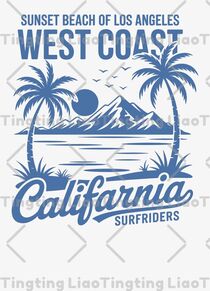 Los Angeles,Sunset Beach,West Coast,California,Palm Trees,Mountains,Ocean,Retro