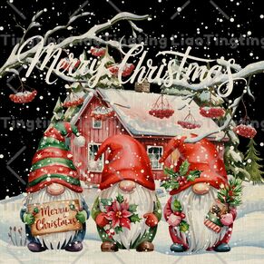 Winter,Christmas,Watercolor Style,Pine,Snowflake,Gnome,Berry,Chalet,Plaid