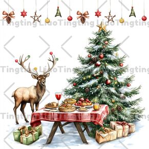 Christmas,Winter,Reindeer,Christmas Tree,Dining Table,Pastoral
