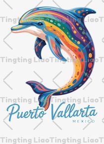Dolphin,Color,Illustration,Puerto Vallarta,Mexico,