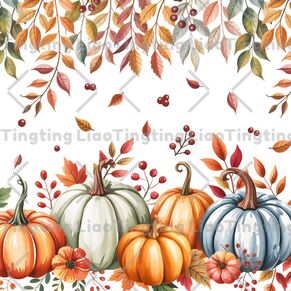 Autumn,Pumpkin,Thanksgiving,Vintage,Medieval,Watercolor,Farmhouse,Eucalyptus Leaves