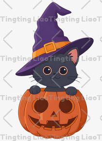 Black Cat,Wizard Hat,Pumpkin,Cat Ear