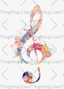 Musical Notes,Watercolor Flowers,Artistic Romance
