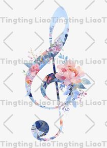 Musical Notes,Watercolor Flowers,Artistic Romance