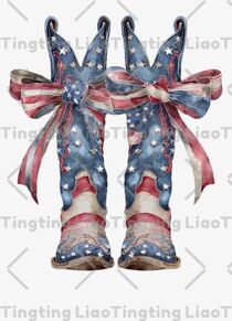 Independence Day,Cowboy Boots,American Flag Bow,Western Style,American Culture