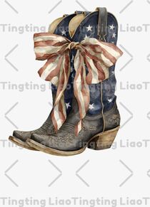 Independence Day,Cowboy Boots,American Flag Bow,Western Style,American Culture