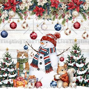 Christmas,Snowman,Winter,Christmas Tree,Poinsettia,Squirrel,Cat,Christmas Ball,Grey Wood Grain