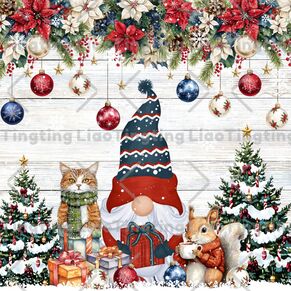 Christmas,Gnome,Christmas Tree,Poinsettia,Squirrel,Cat,Wood Grain