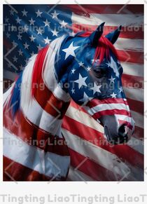 Independence Day,Patriotic,Art,Red,White,Blue,Horse,American Flag