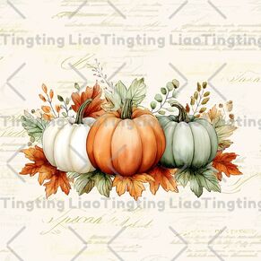 Thanksgiving,Autumn,Green Orange Pumpkin,Leaves,Vintage,Farm,Farmhouse,Country