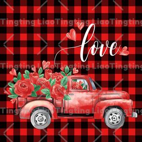 Valentine,Truck,Rose,Text,Plaid