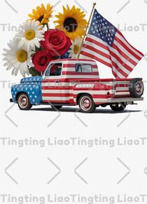 Independence Day,Patriotic,Vintage,Flower,Red,White,Blue,Yellow,American,Nature,Nostalgia,Vintage Truck,American Flag,Sunflower