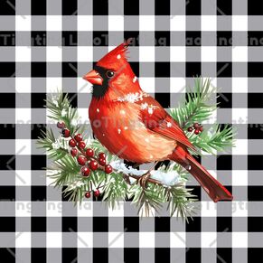 Christmas,Winter,Red Robin,Berries,Black And White Check