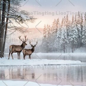 Winter,Christmas,Art,Retro,Snowflake,Elk,Decoration