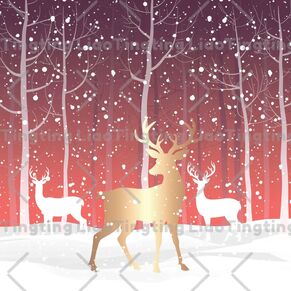 Christmas,Winter,Elk,Pine,Snowflake,Gradient,Modern Style
