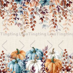 Thanksgiving,Autumn,Pumpkin,Blue Orange White,Vintage,Linen Bottom,Farm,Country