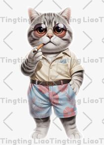 Sunglasses,Cat,Stand-up,Anthropomorphic,Shorts,Belt,Cigarette,Shirt