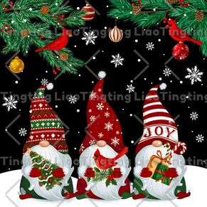 Christmas,Winter,Gnome,Christmas Tree,Pine,Robin,Christmas Ball,Black