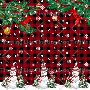 Christmas,Winter,Snowman,Christmas Tree,Robin,Red Black