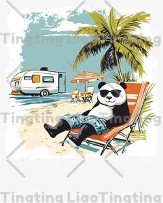 Beach,Vacation,Coconut Trees,Camper Van,Sun Panda