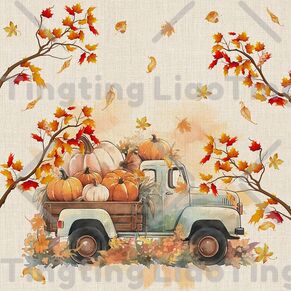 Thanksgiving autumn leaves and truck with pumpkins