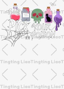 Halloween,"PICK YOUR POISON," Medicine Bottle,Skull,Bat,Spider Web