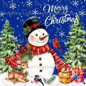 Christmas,Winter,Snowman,Snowflake,Christmas Tree,Elk,Red Gift,Blue Background