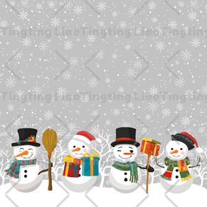 Christmas,Winter,Snowman,Christmas Tree,Snowflakes,Gray Background