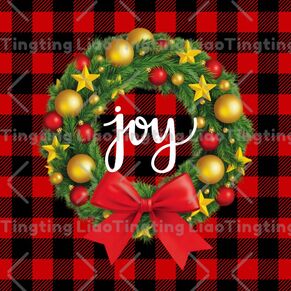 Christmas,Winter,Farm,Christmas Wreath,Red Check JOY