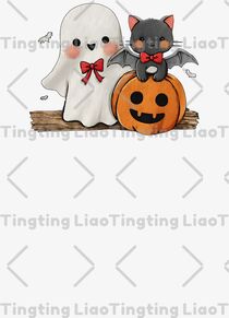 Cartoon,Halloween,Kitten,Ghost,Pumpkin,Bat,Bow,Wood