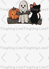 Cartoon,Halloween,Black Cat,Ghost,Pumpkin,Bow
