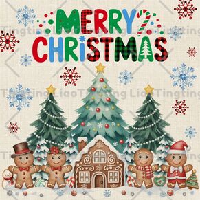Christmas,Christmas Tree,Gingerbread Man,Snowflake,Text,Winter,Linen
