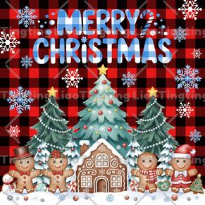 Christmas,Christmas Tree,Gingerbread Man,Snowflake,Text,Winter,Plaid